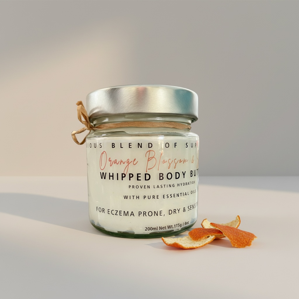 A deeply nourishing body butter specifically developed for dry and eczema-prone skin. This formula blends the bright, uplifting scent of orange with warm, grounding spices to create a comforting experience while providing targeted care.